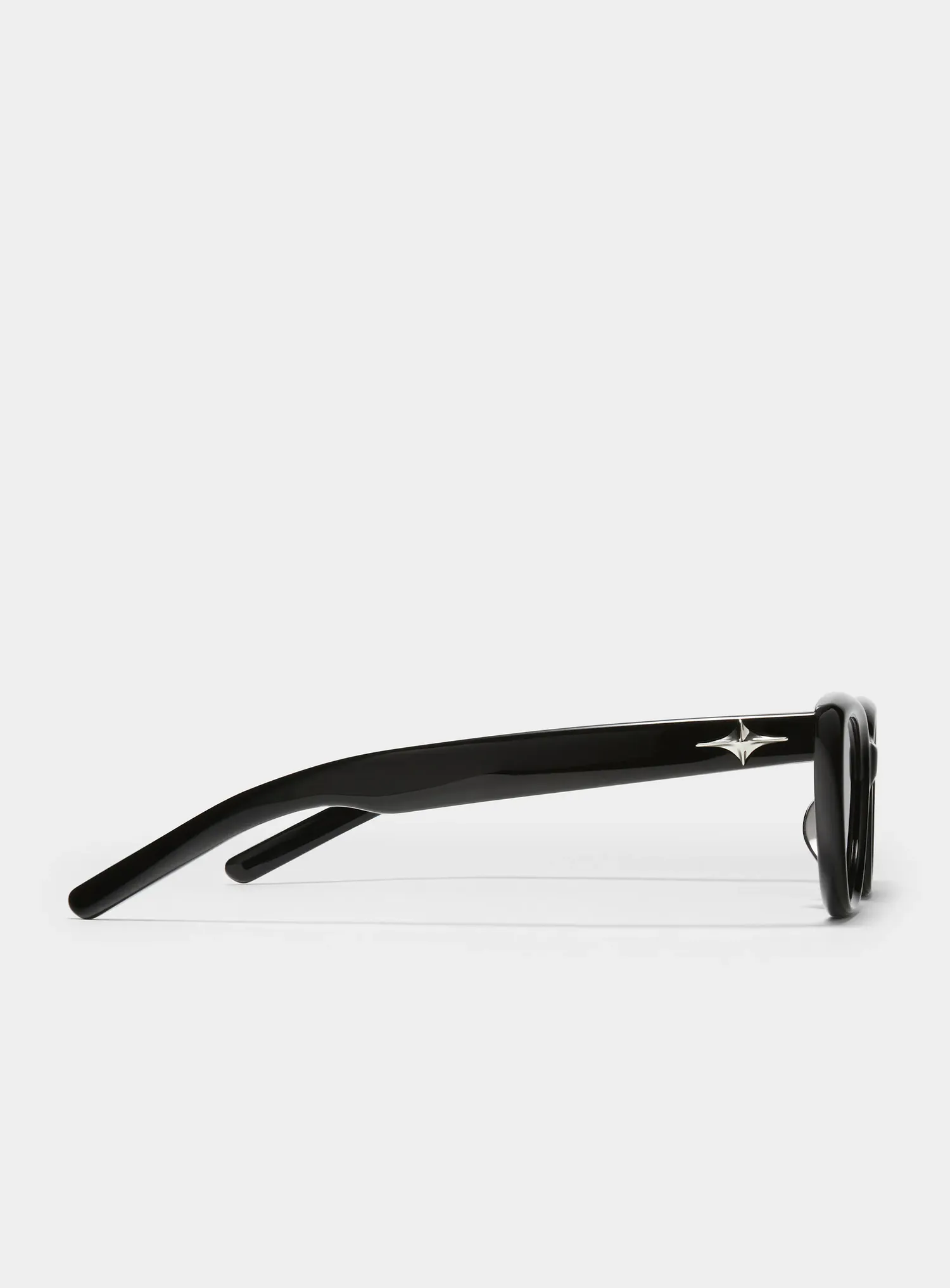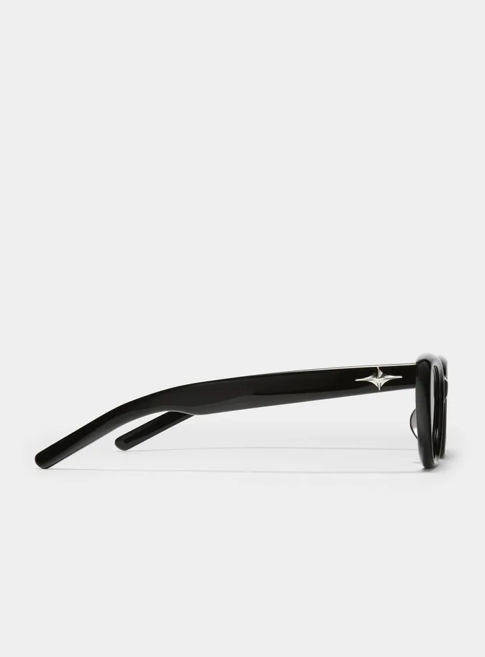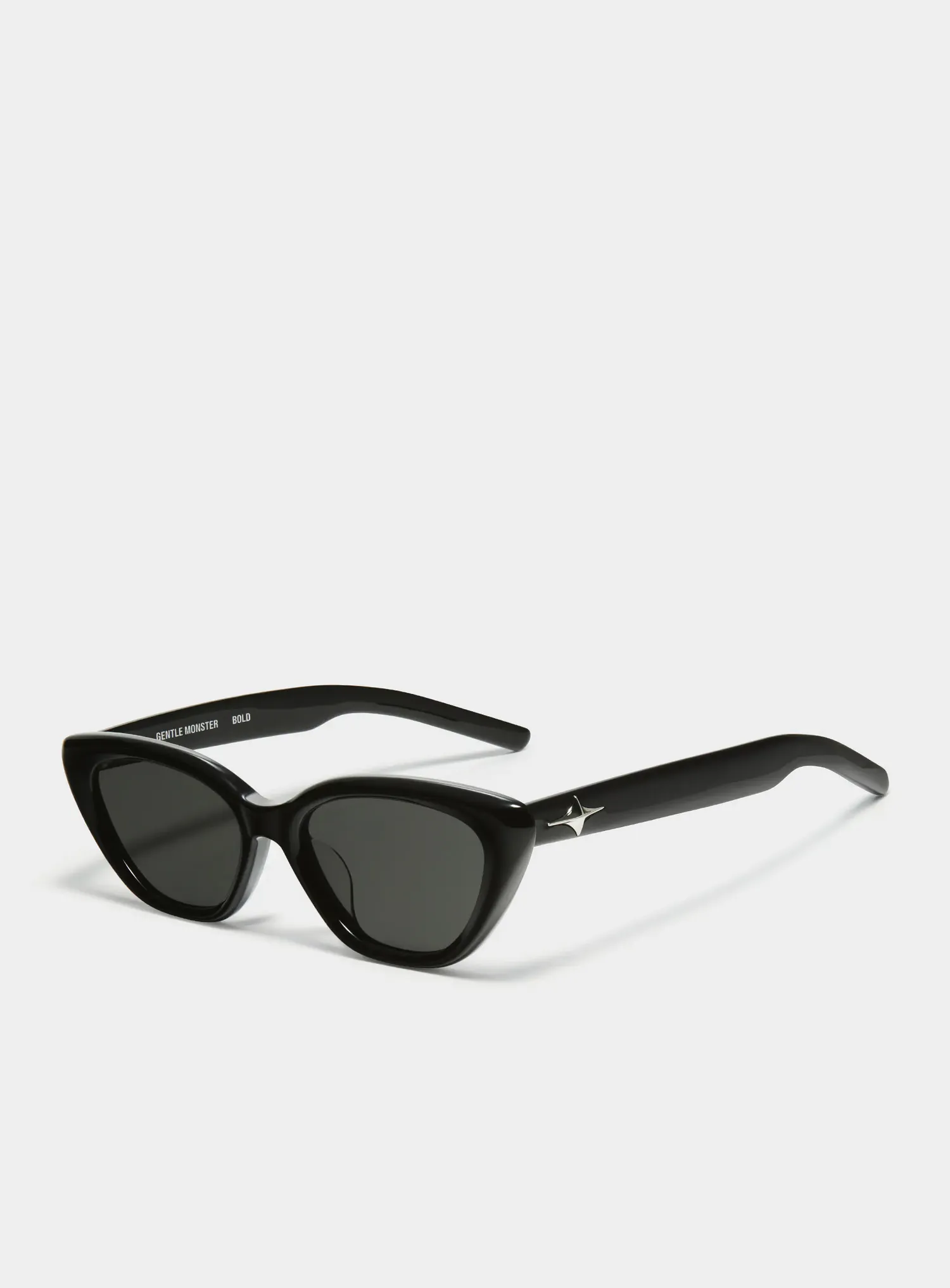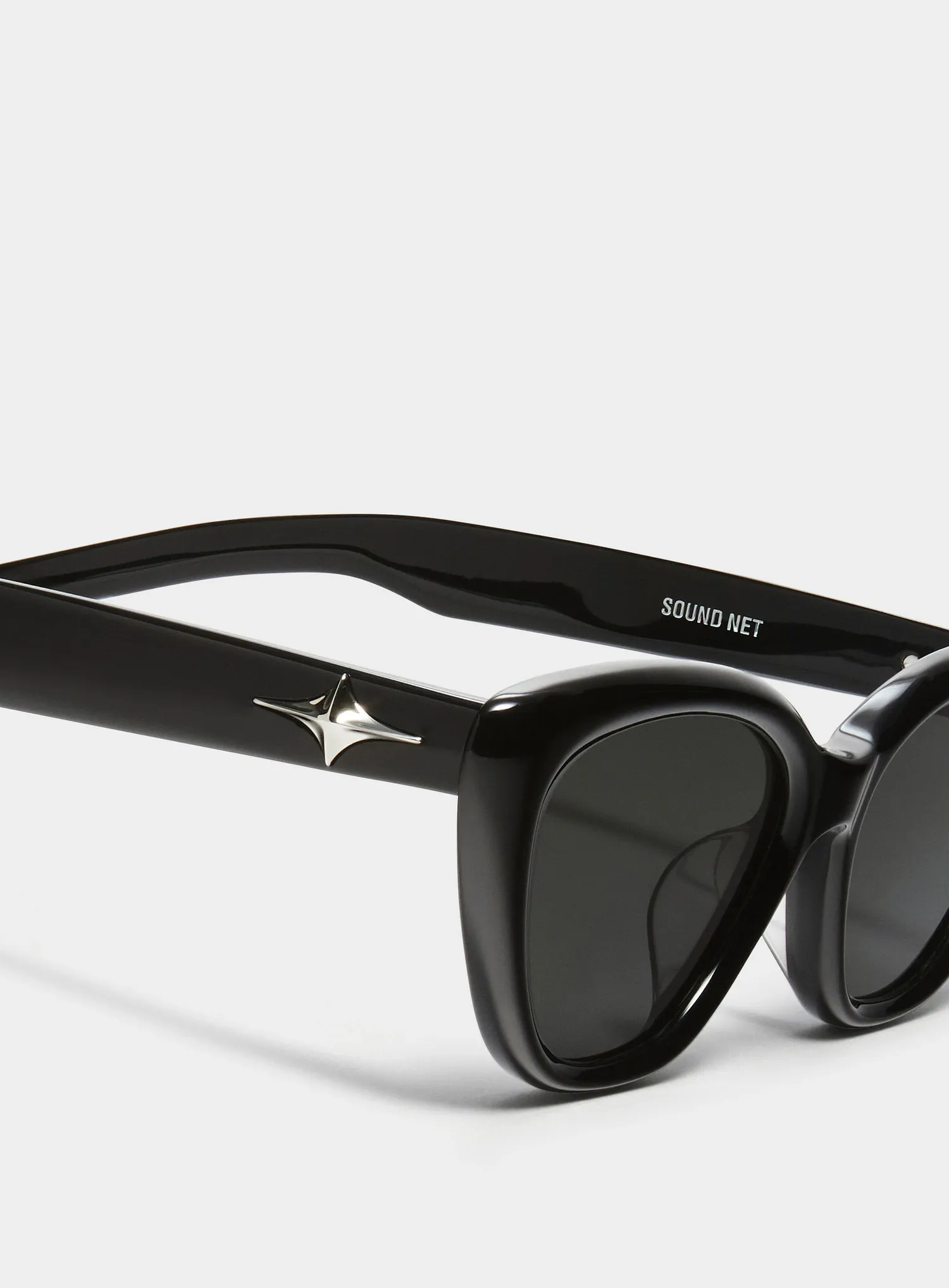 Discover the Sound Net 01 sunglasses from Gentle Monster's BOLD collection, a collection inspired by the stars in the galaxy. Featuring a simple black frame and a sleek cat-eye silhouette, this model is a must-have item that can be paired with any look. The signature BOLD symbol on the temples is a delicate, eye-catching detail that showcases Gentle Monster’s unique aesthetic. The softly-curved temples and flat tips complete the bold design of this collection.