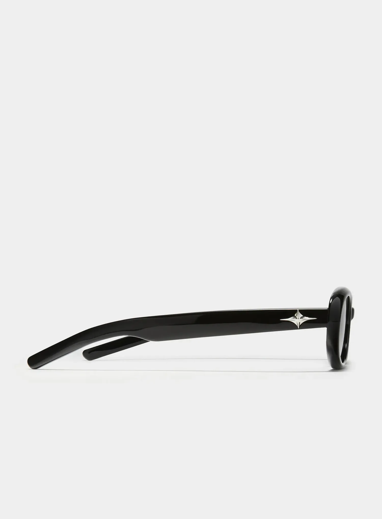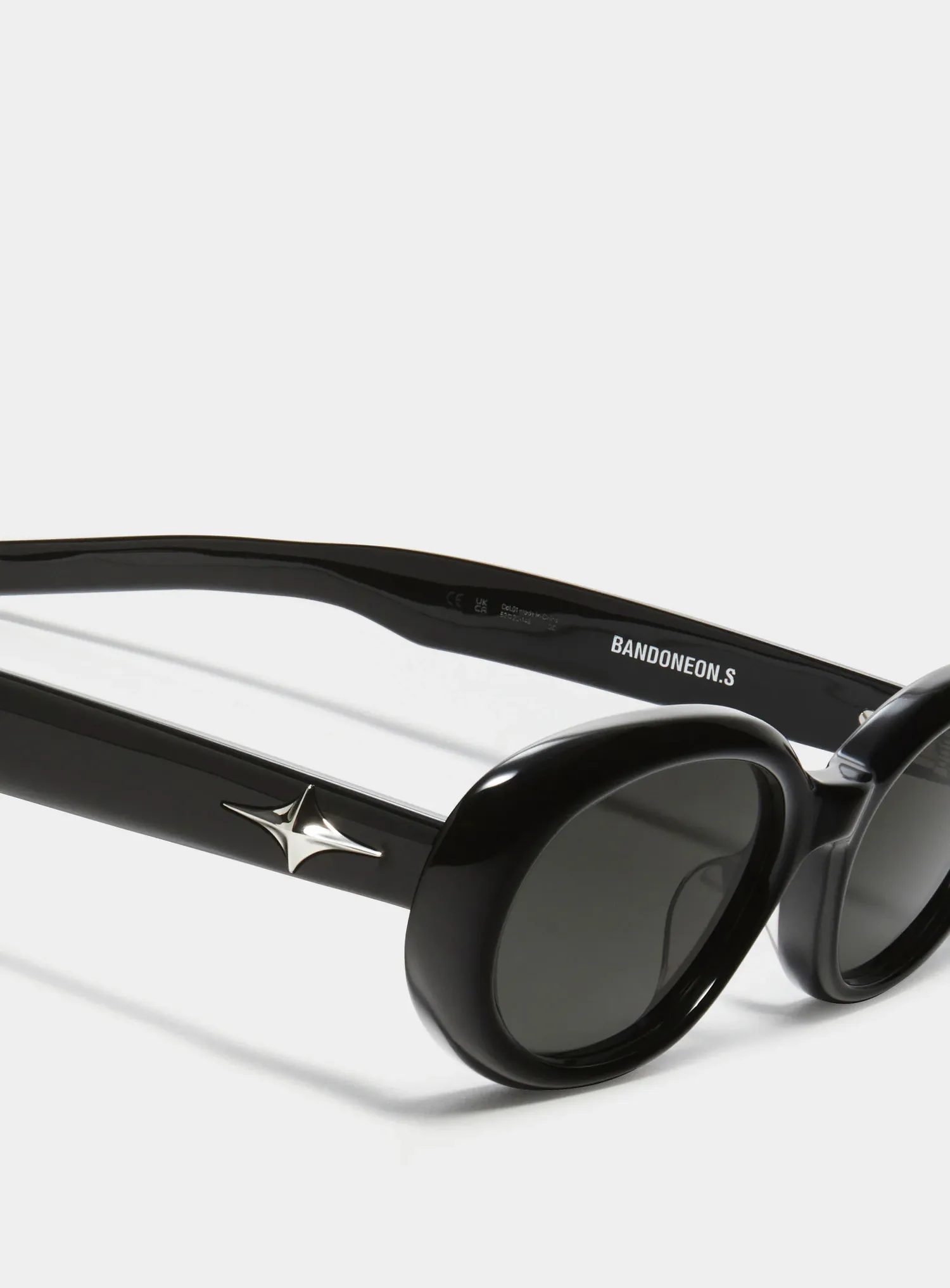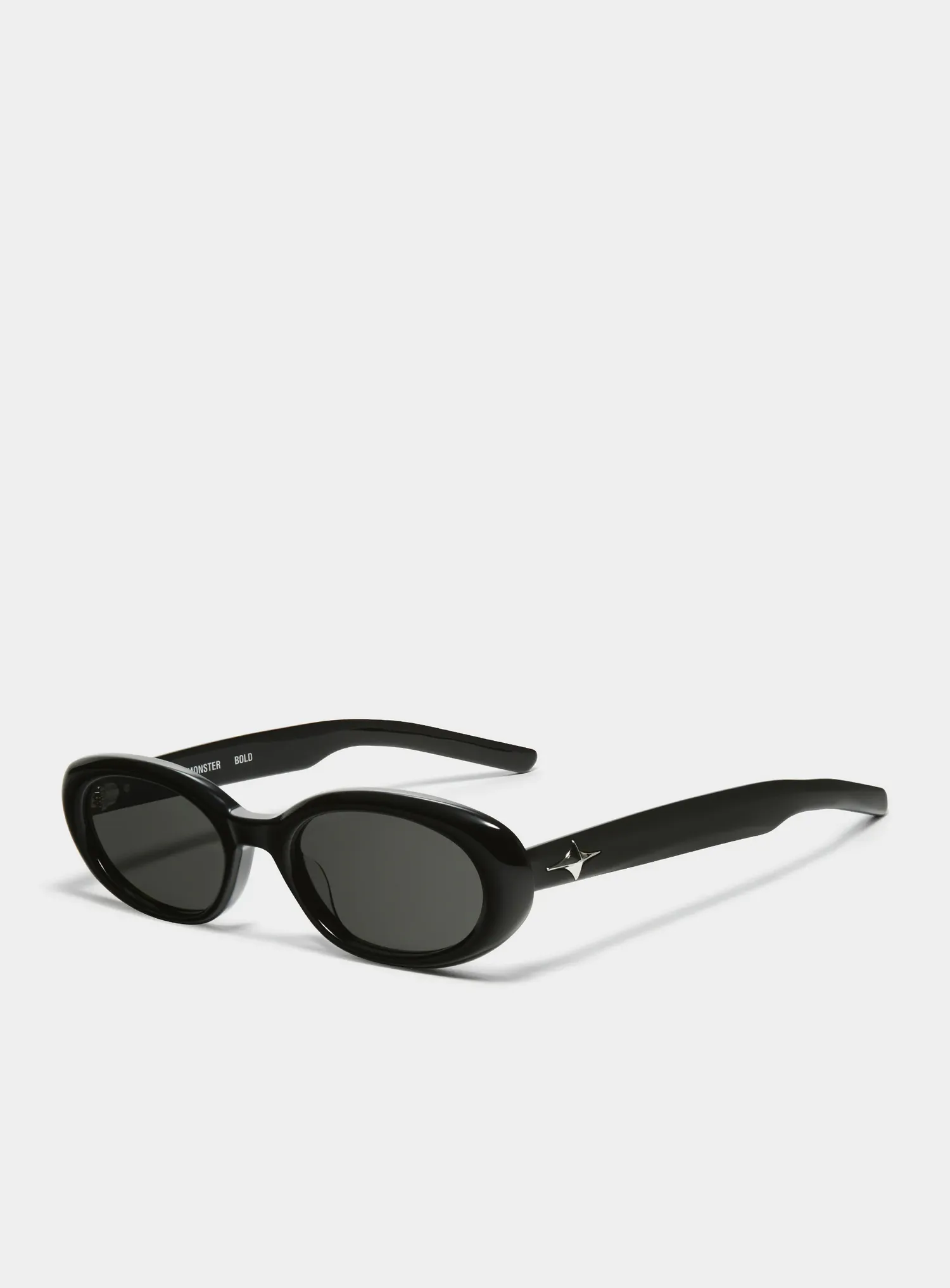 Discover the Bandoneon.S 01 sunglasses from Gentle Monster's BOLD collection, a collection inspired by the stars in the galaxy. Featuring a simple black frame and a modern, voluminous oval silhouette, this model embodies the uniqueness of the BOLD collection. The signature BOLD symbol on the temples is a delicate, eye-catching detail that showcases Gentle Monster’s unique aesthetic. The bold temples and flat tips enhance the refined silhouette of this piece.