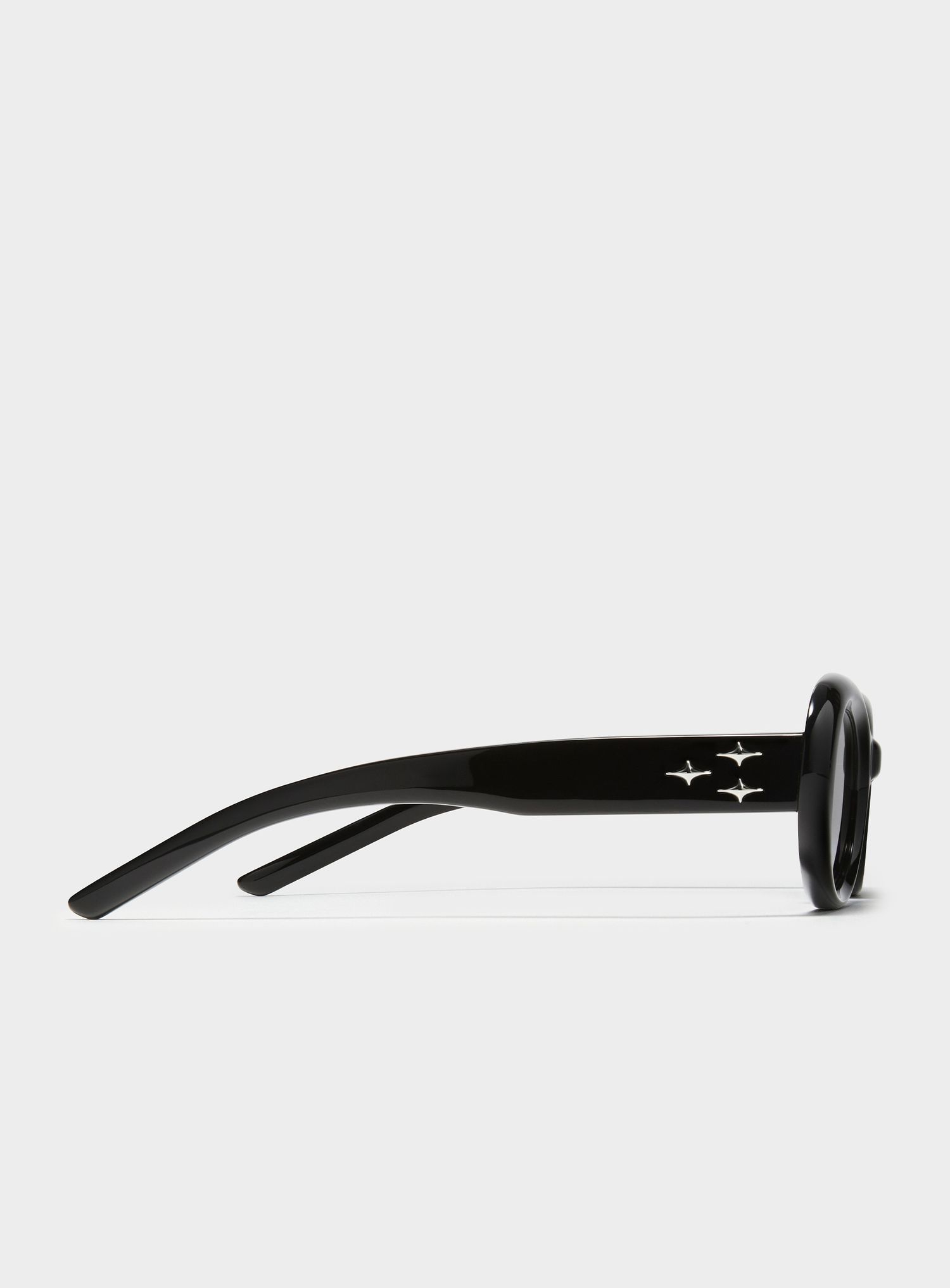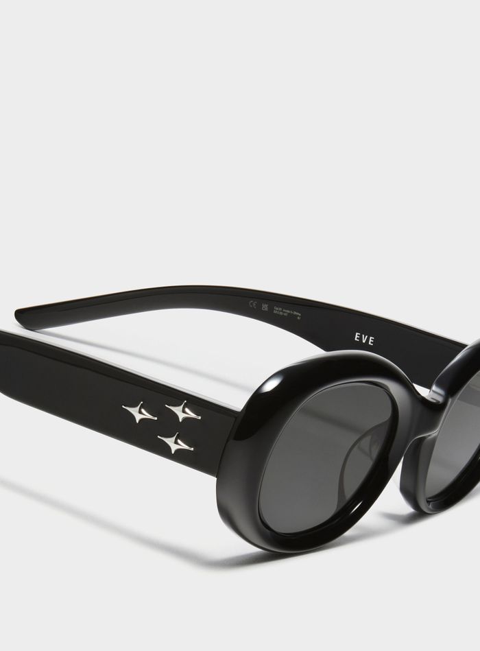 Discover the Eve 01 sunglasses from Gentle Monster's Bold collection, a collection inspired by the stars in the galaxy. Featuring a simple black frame and a modern, voluminous oval silhouette, this model is a must-have item that can be paired with any look. The signature BOLD symbol on the temples is a delicate, eye-catching detail that showcases Gentle Monster’s unique aesthetic. The softly-curved temples and flat tips complete the bold design of this collection.