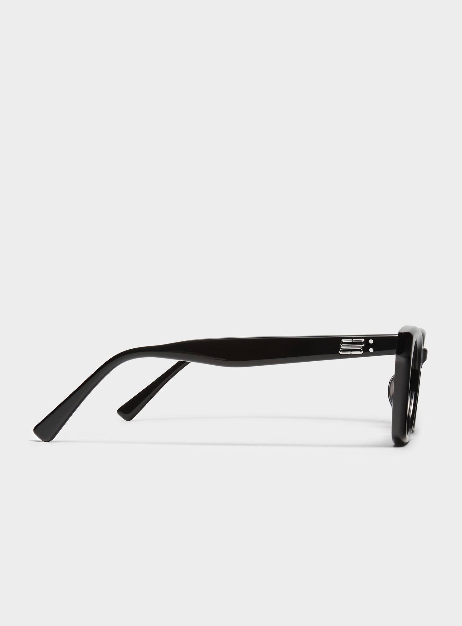 Discover the Hue 01 sunglasses from Gentle Monster’s 2023 Collection. Featuring a simple black frame and a structured square silhouette, the iconic metal detail on the temples adds a touch of sophistication to this piece.