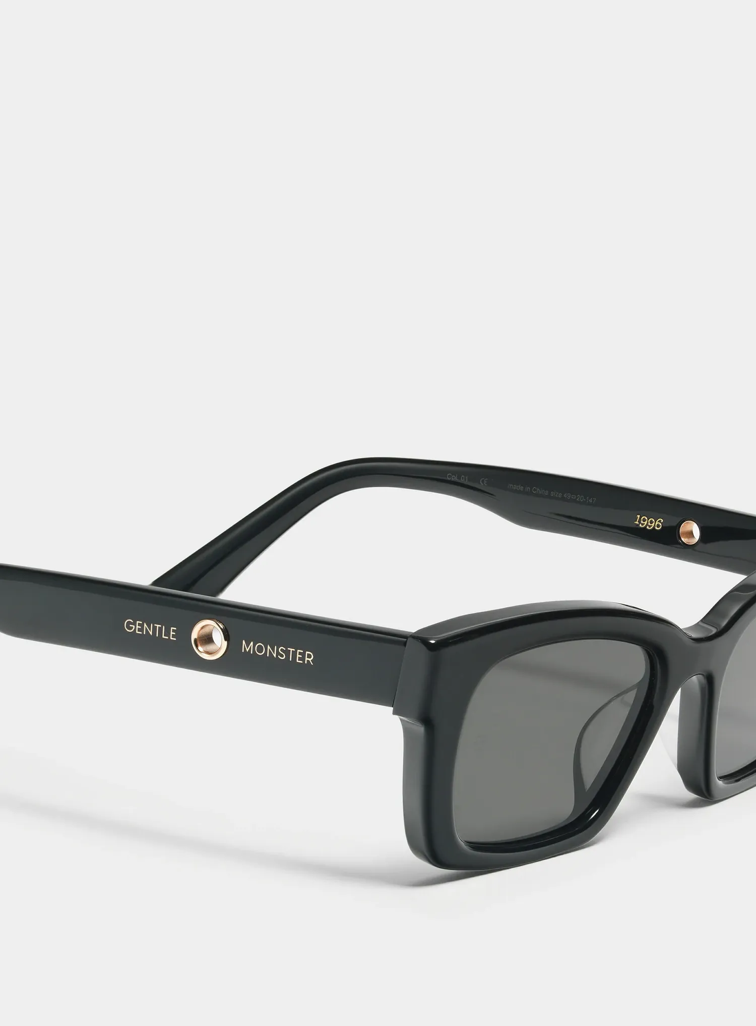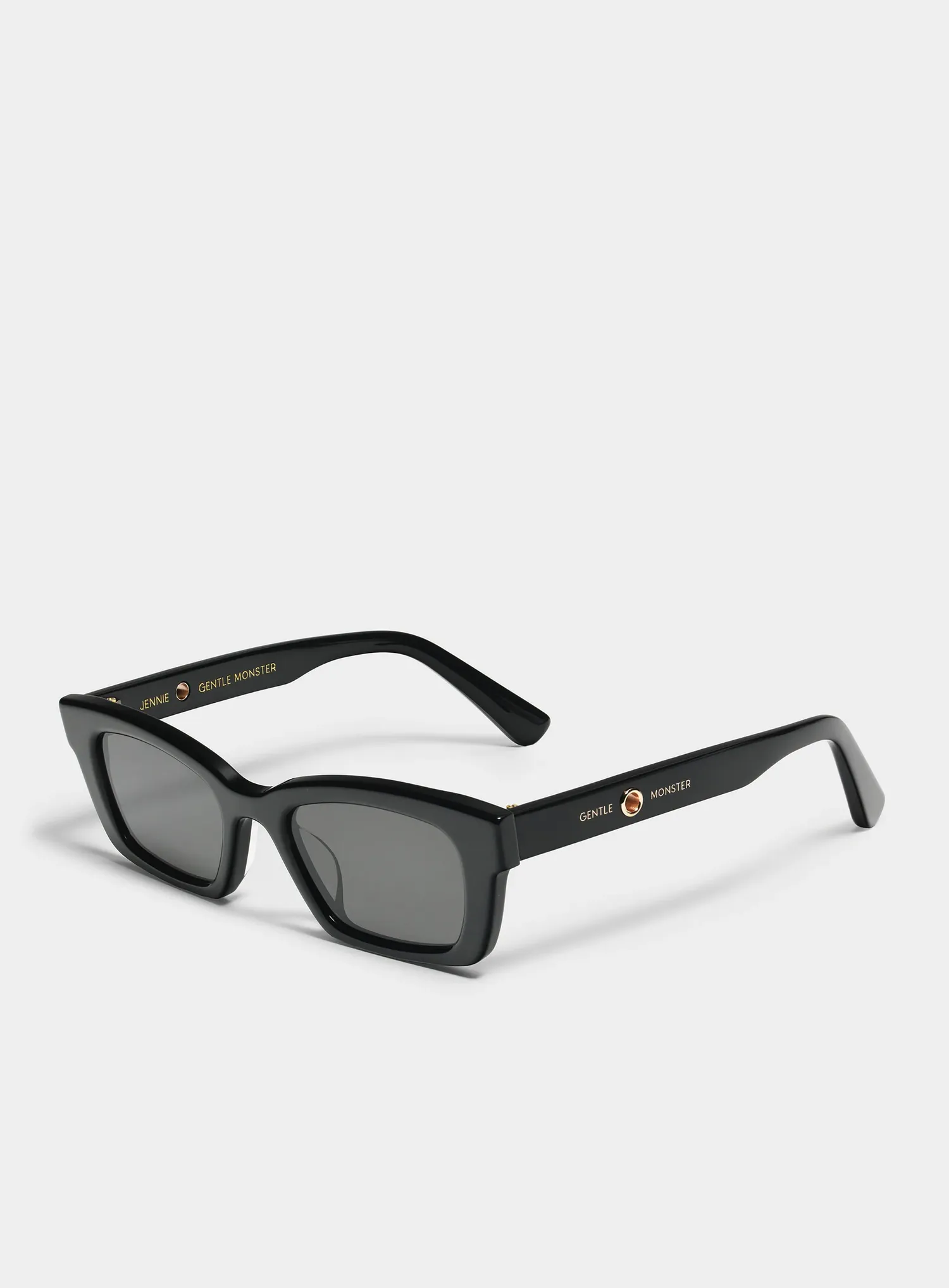 Jennie - 1996 01 from the Jentle Home collection features a black rectangular acetate frame. This cat-eye frame includes 99.9% UV protection black lenses, highlighted by temples decorated with a signature gold metal ring.