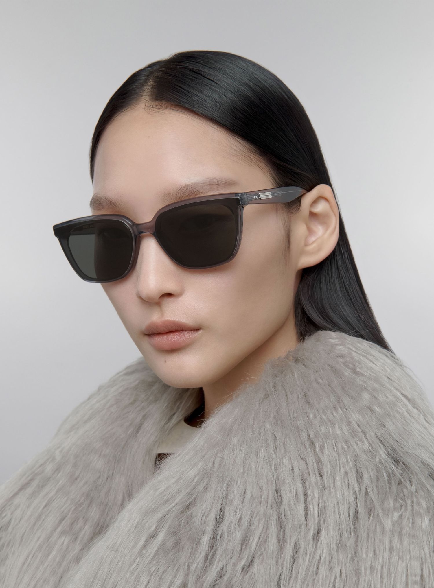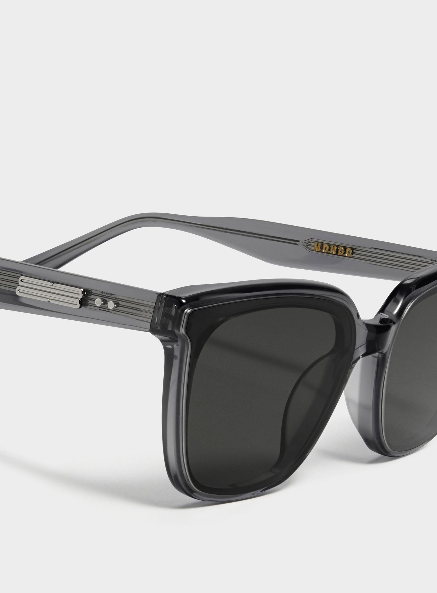 Discover the Mondo G1 sunglasses from Gentle Monster’s 2023 Collection. Featuring a subtle gray frame and a statement square silhouette, the iconic metal detail on the temples adds a touch of sophistication to this piece.