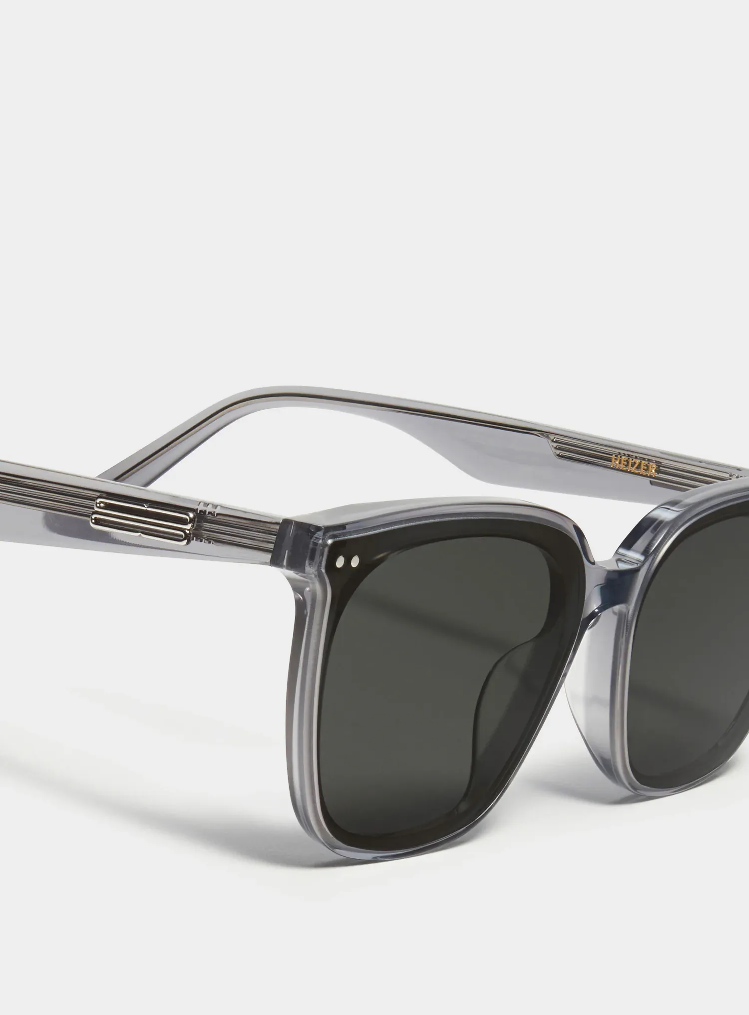 Discover the Heizer G1 sunglasses from Gentle Monster’s 2023 Collection. Featuring a subtle gray frame and a curved square silhouette, the iconic metal detail on the translucent temples adds a touch of sophistication to this piece.