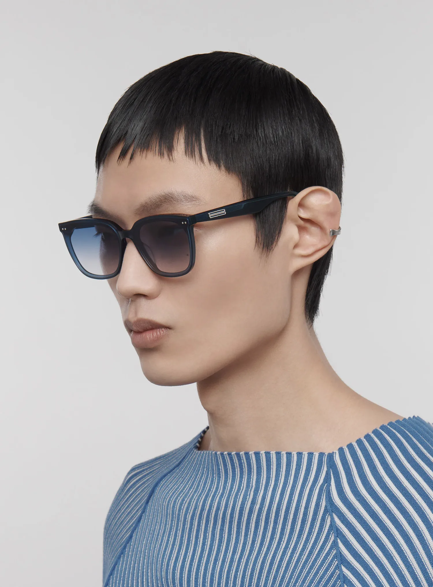 Discover the Heizer NC2 sunglasses from Gentle Monster’s 2023 Collection. Featuring a stylish graduated navy frame and a curved square silhouette, the iconic metal detail on the graduated temples adds a touch of sophistication to this piece.